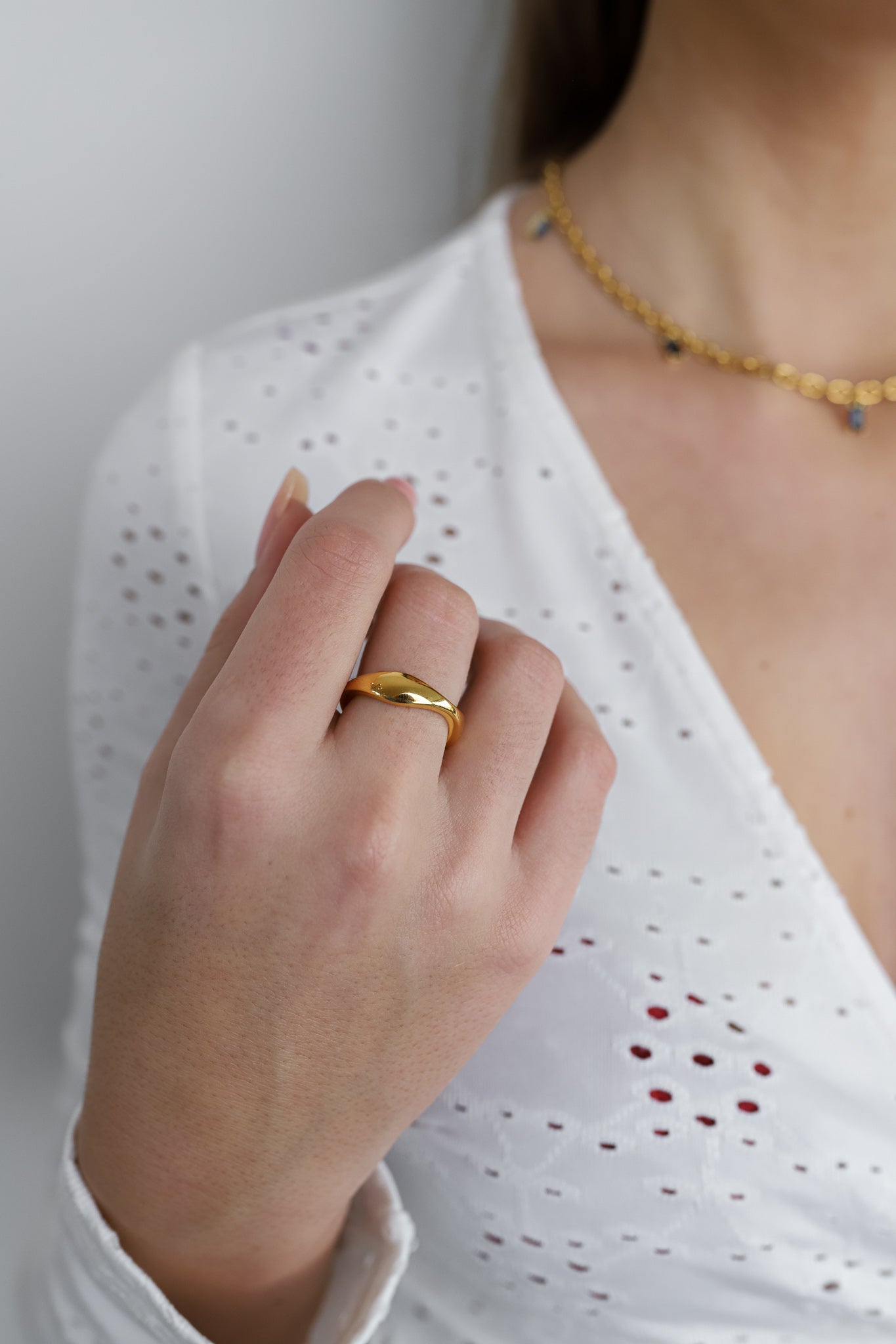 BUMPY yüzük yeni favori parçanız olacak! Herhangi bir kıyafetle uyum sağlayan iddialı bir parça olmasının yanı sıra diğer zarif yüzüklerinizle birlikte günlük ve zamansız şıklık için de mükemmeldir!
