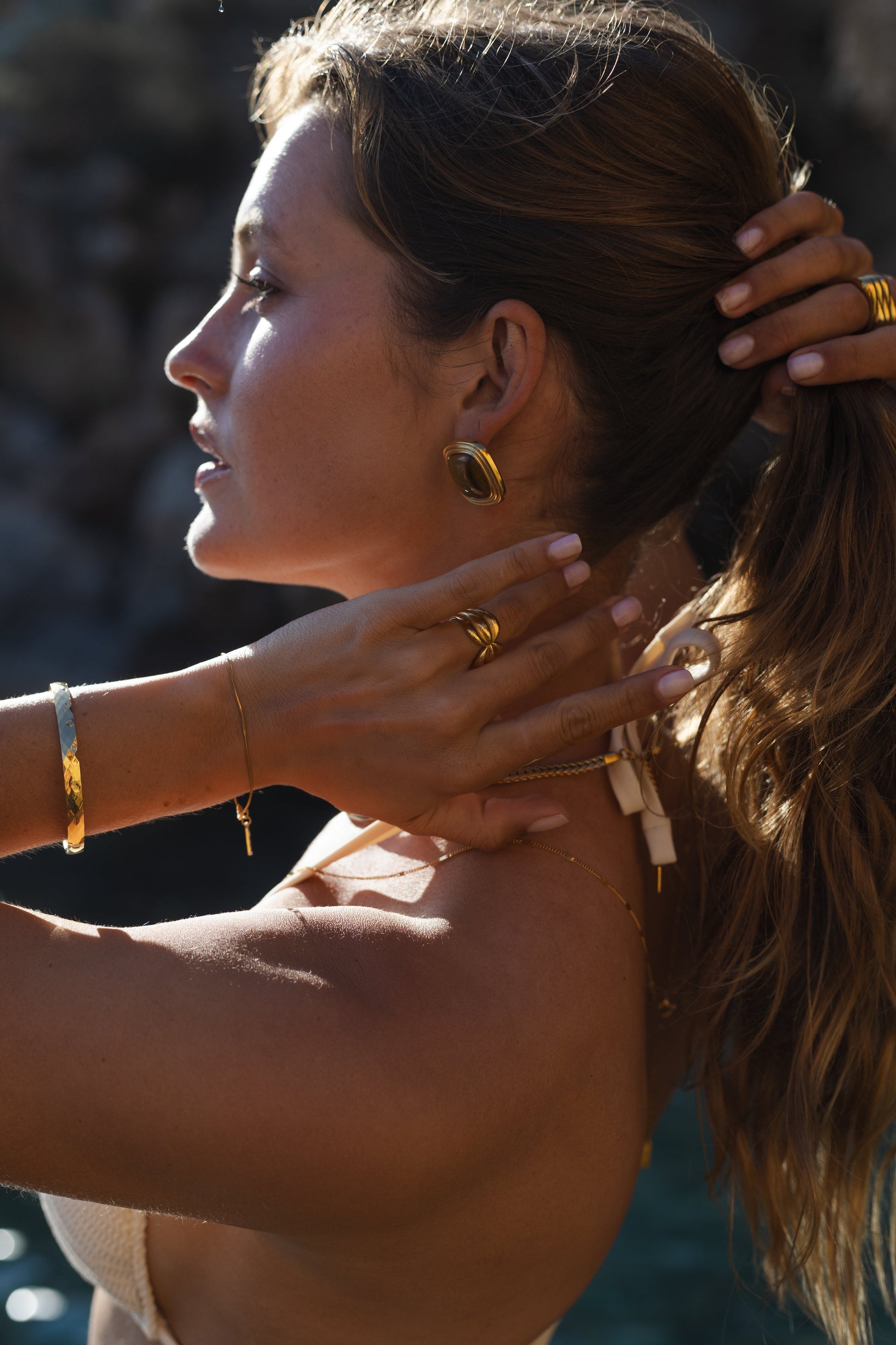 Tüm takılarımız paslanmaz çelikten yapılmıştır. Altın renkli olan parçalarda ise PVD altın kaplama kullanılmıştır. Bu, rengin çok uzun süre (en az birkaç yıl) kalıcı olacağı anlamına gelir. Kolay kolay solmaz ve ayrıca çizilmeye karşı dayanıklıdır.