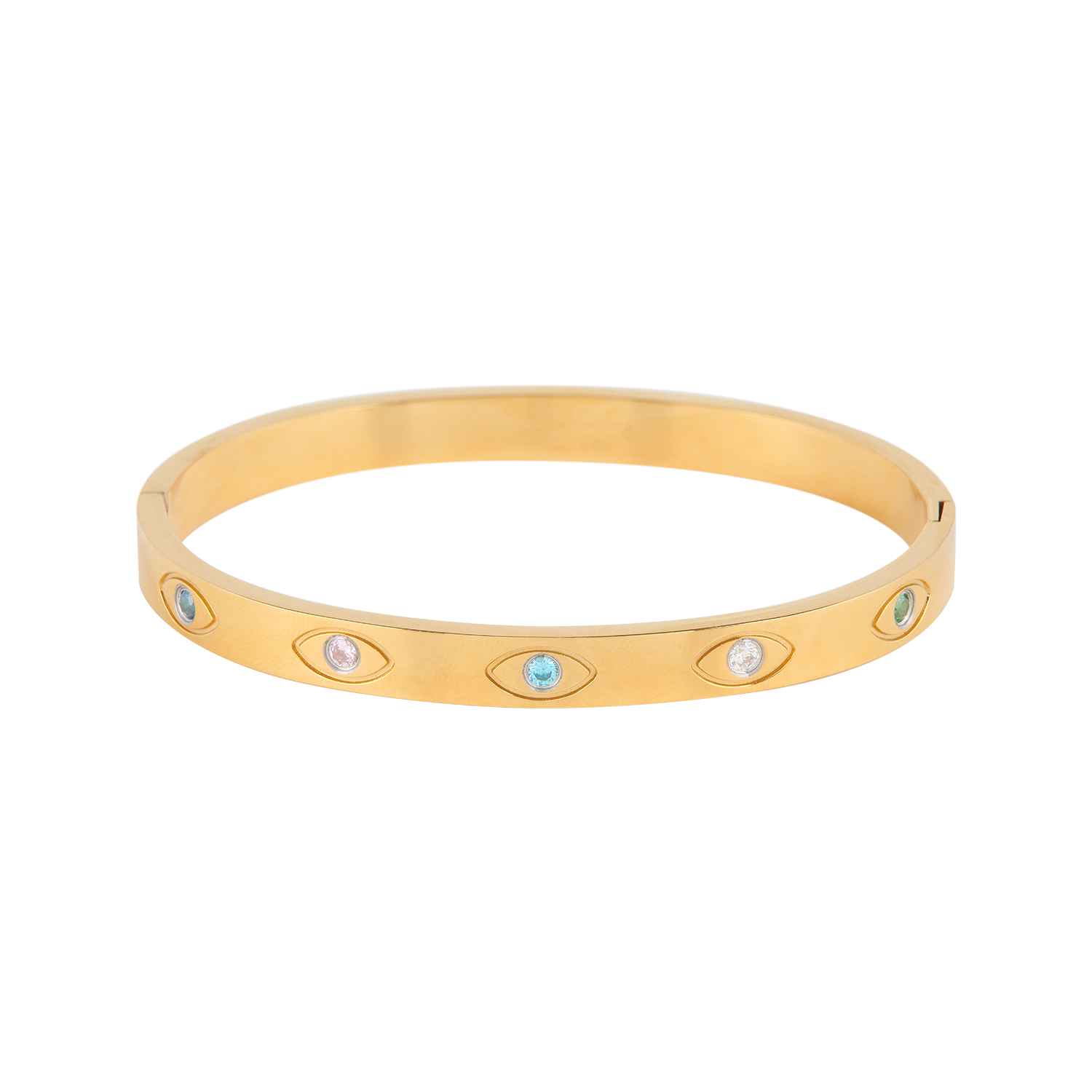 Tüm gözler en yeni EYE bilekliğimizde! Renkli CZ taşlarla bezenmiş etkileyici göz deseniyle dikkatleri kesinlikle üzerinize çekeceksiniz.
