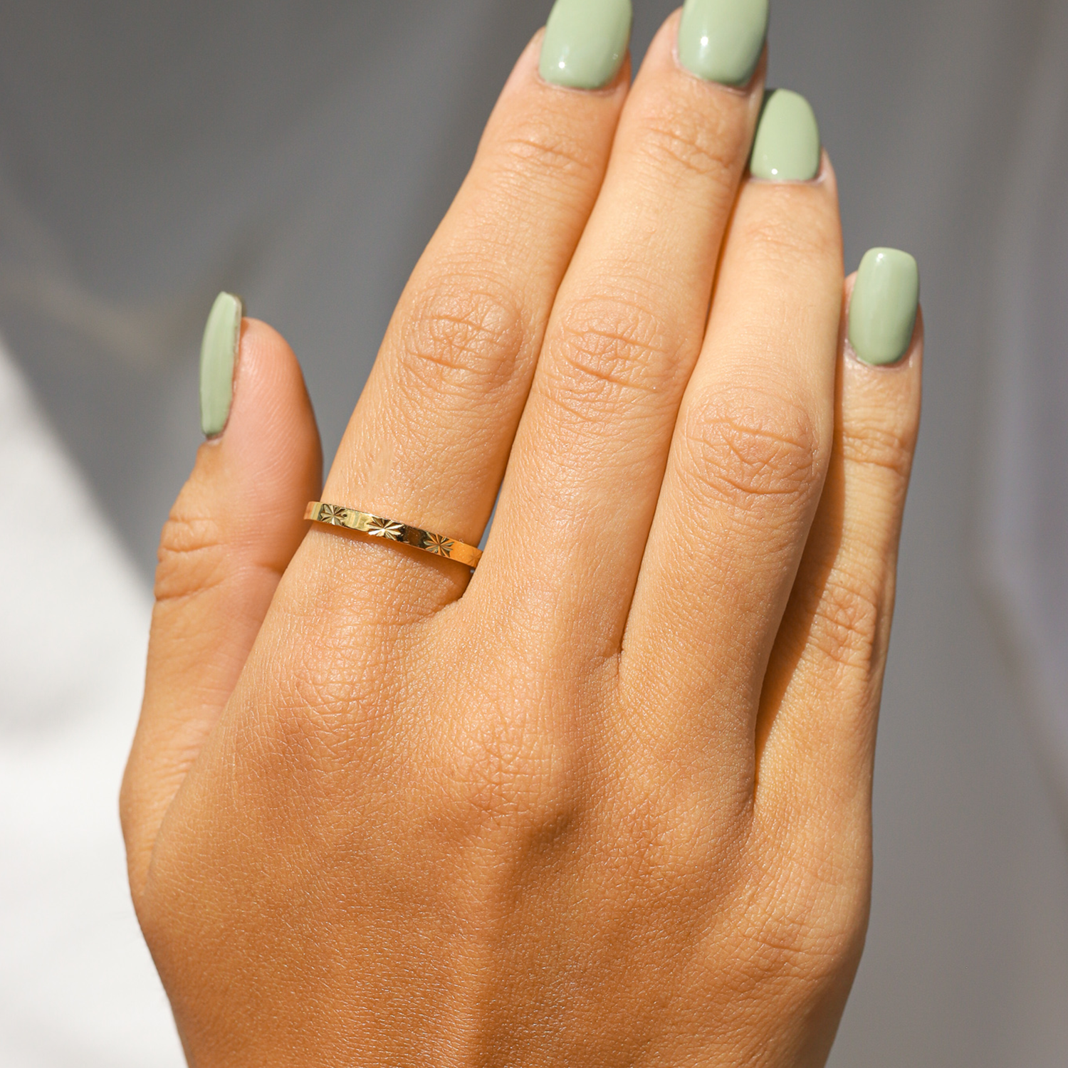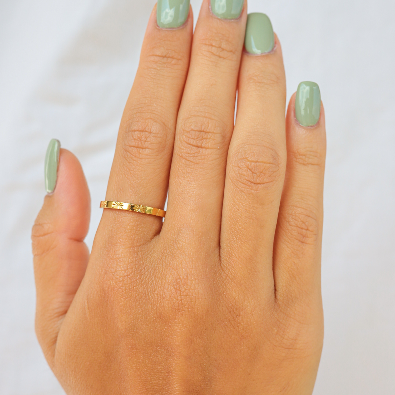 Basit ama detaylı ve kesinlikle dikkat çekici! MILA yüzüğümüz, minimal şık görünümünüz için mükemmel bir günlük takı ve hassas yüzük koleksiyonunuza tatlı bir ek.Favori charm’larınızla kombinleyin!