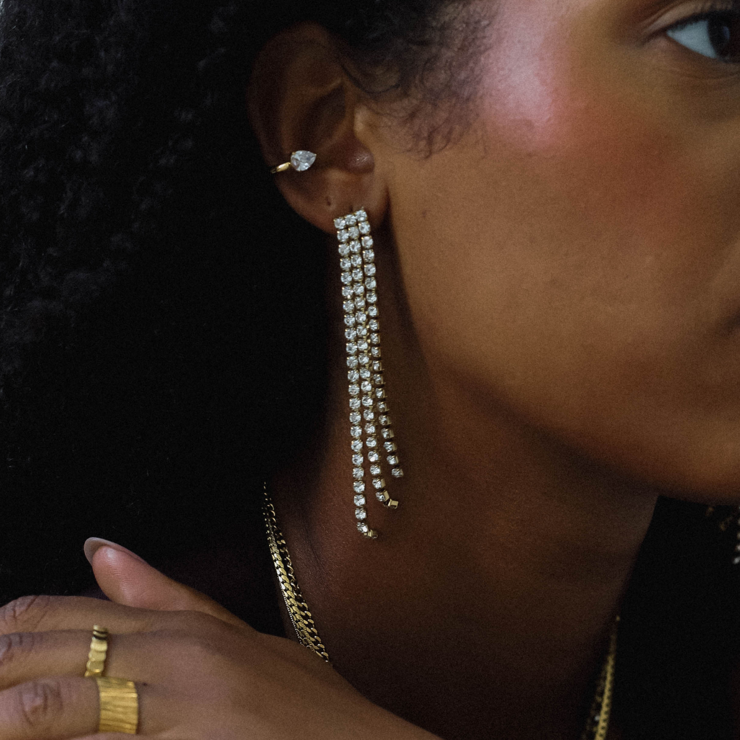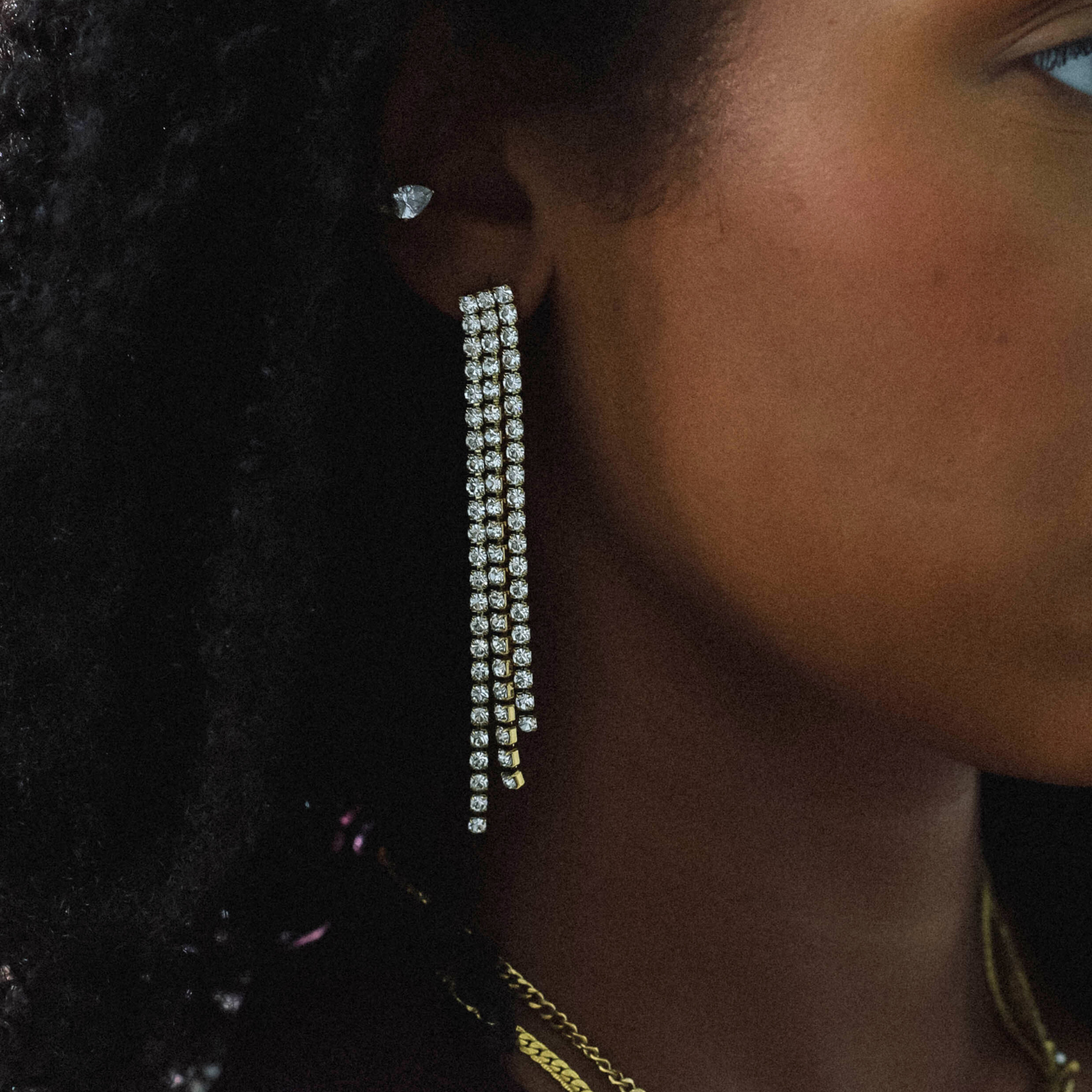 Üç kat uzunluğundaki ışıltılı taşlarıyla MIRACLE, kesinlikle öne çıkmak için tasarlandı! Bu küpelerin zarif ve şık görünümüyle tarzınızı yükseltin; gittiğiniz her yerde tüm bakışları üzerinize çekeceksiniz!