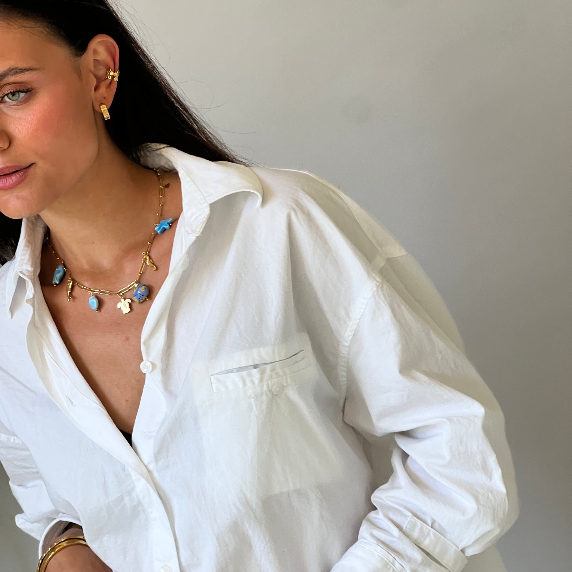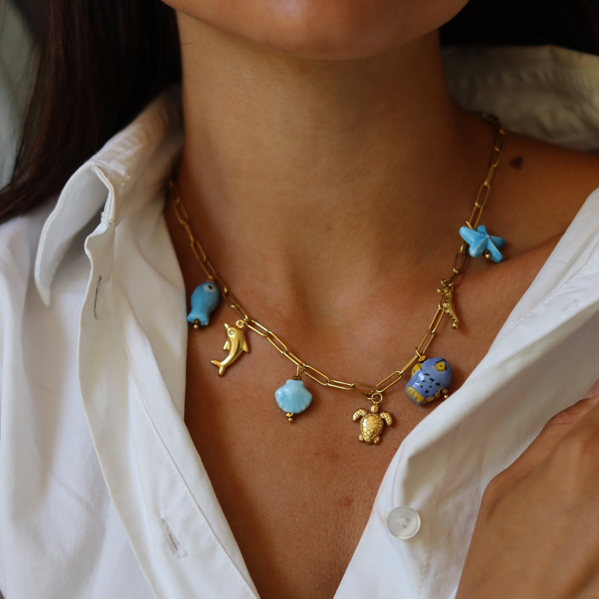 Tüm takılarımız paslanmaz çelikten üretilmiştir. Altın olan parçalarda PVD altın kaplama kullanılmıştır. Bu sayede rengi gerçekten uzun süre (en az birkaç yıl) dayanır. Kolayca solmaz ve ayrıca çizilmelere karşı dayanıklıdır.