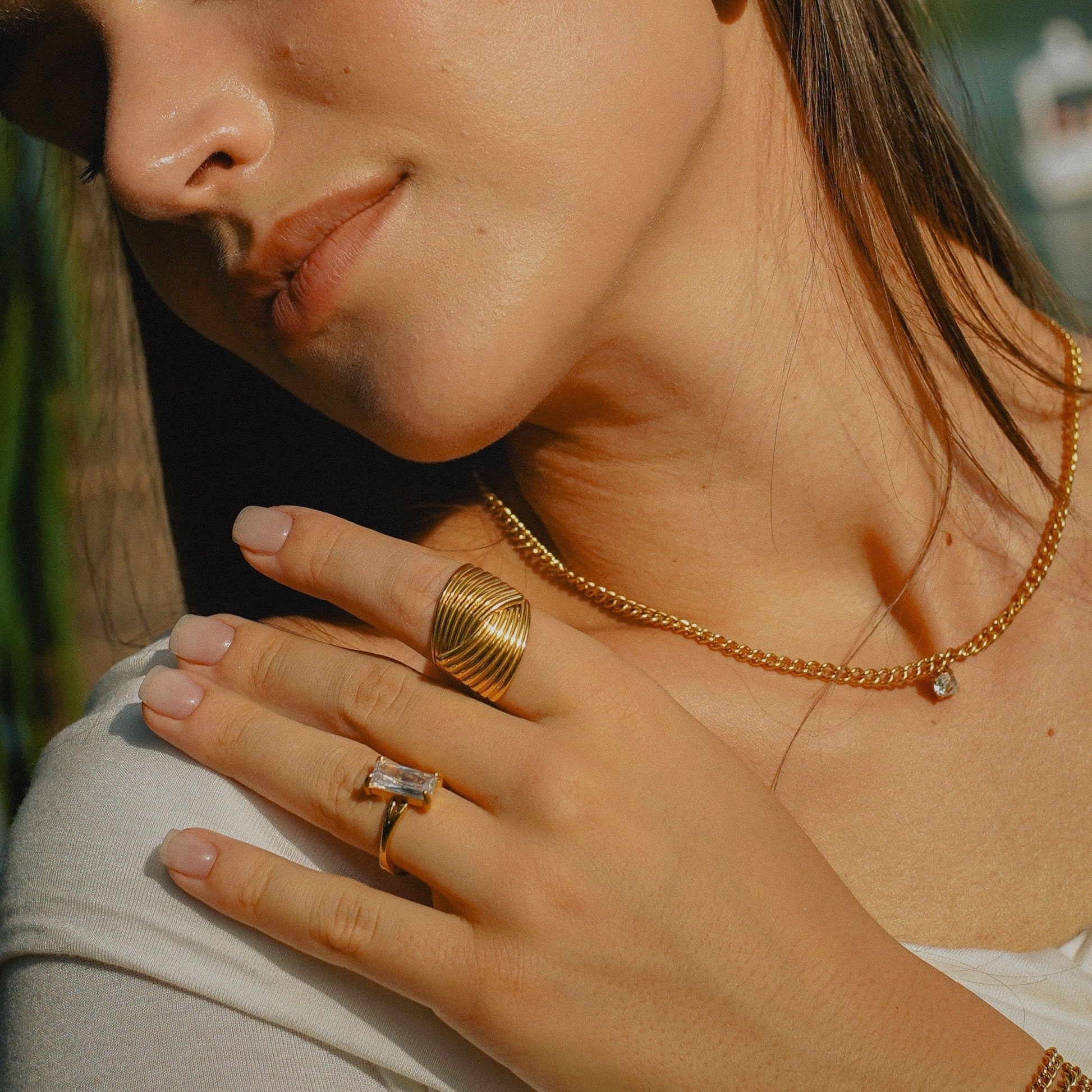 Duş alırken, yüzerken veya spor yaparken bile rengini korur — ışıltısı, gümüş takılardan çok daha uzun ömürlüdür.